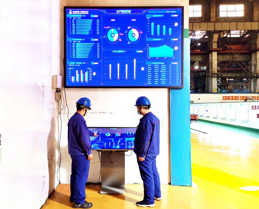 焊接工藝規(guī)范符合率、設(shè)備使用率、耗材消耗量……十幾個(gè)把控生產(chǎn)過程的關(guān)鍵數(shù)據(jù)在一塊電子屏上集中展示,成為電機(jī)公司冷作分廠質(zhì)量管控的“千里眼”“順風(fēng)耳”。